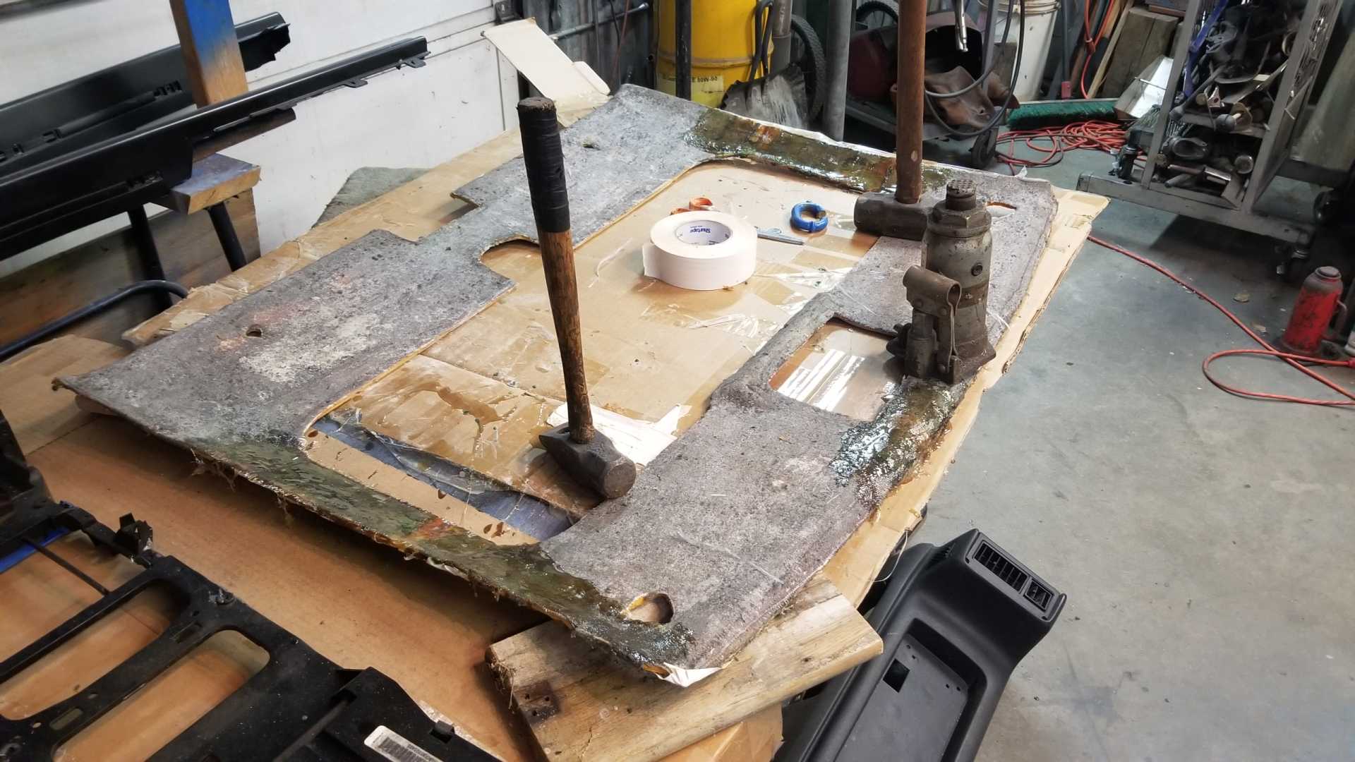 I also scraped the foam from my first attempt at upholstering my Frankenstein headliner backer board. What a mess.