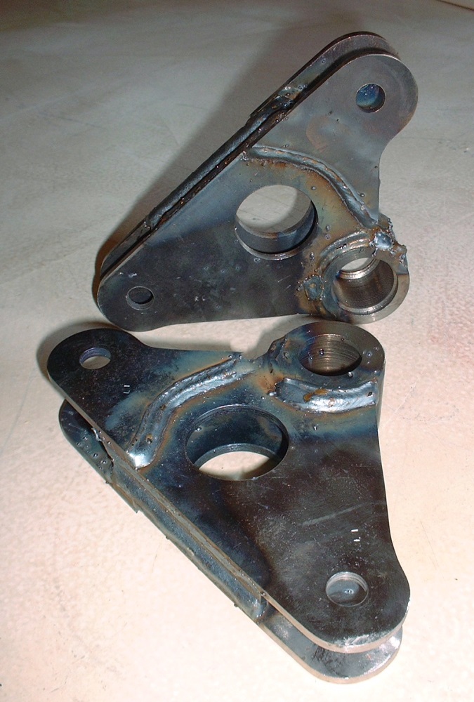 Thanks X-Body. I mentioned it earlier, but the reason each side of the main body of the bell crank was made in two pieces is so that I could accommodate the 5/8" width of the pushrod spherical bearing at one end, and the 1" wide spherical bearing at the end of the shock absorber. I could have made the bell crank 1" wide over it's entire length and used spacers on the pushrod bearings to make up the difference, but that would have forced me to use a wider hub since the triangular plates would have been moved further outboard and I would have otherwise lost the shoulder that I used to weld the plates onto the hub. So what's the big deal about using a wider hub? Not much, but I felt the bell crank was going to look quite large as it was and I wanted to minimize it's visual impact. A wider hub would have also forced me to change my bell crank mount design slightly to accommodate it.