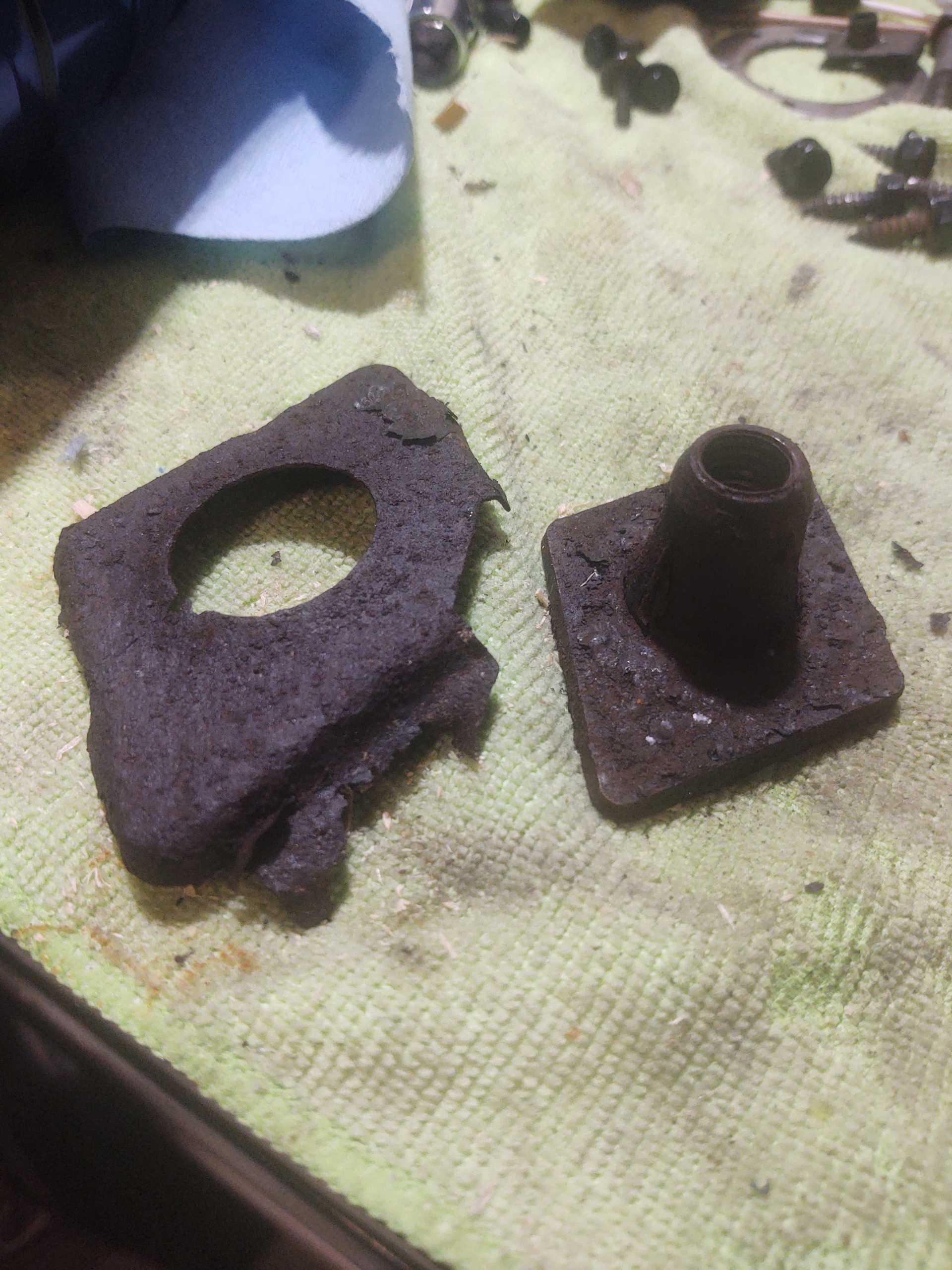 I got the parts out of the frame and it went a lot easier than I anticipated. I wanted to show what they look like for anyone else who might be doing the same thing.