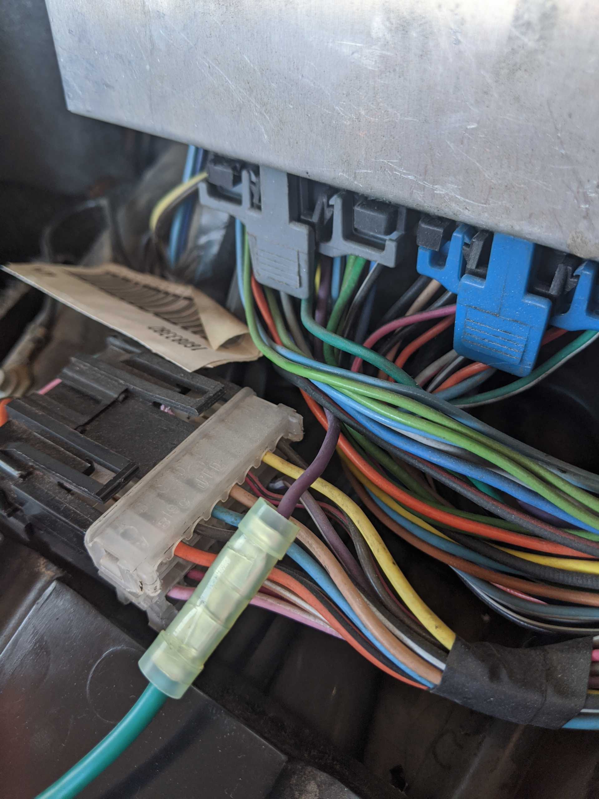 The previous owner had a mystery green wire routed straight from the ECM through the firewall and tied in the general area of the O2 sensor, but the end was just hanging loose. Maybe they had it hotwired somehow?