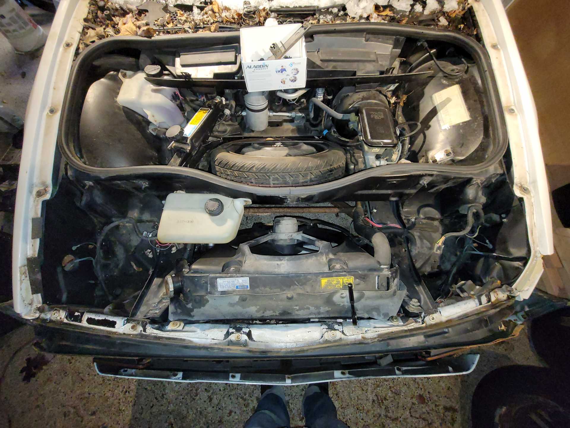The body damage isnt horrific, and she tracks straight and runs fine other than a new periodic coolant leak from the rad area, but the steel that surrounds the headlight 'bucket' / area it retracts into is mangled as heck.
