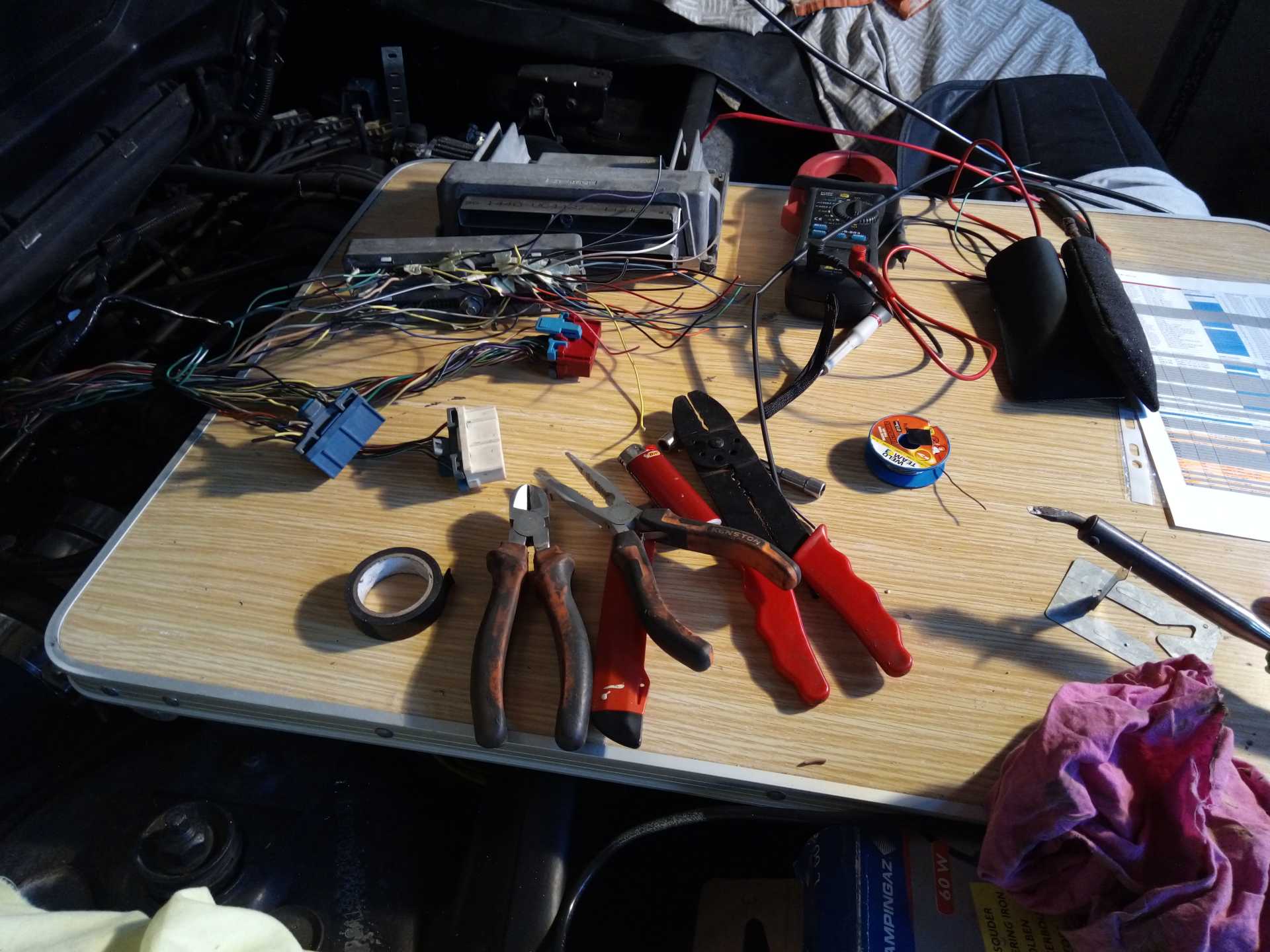 The car starts and runs correctly when cold but starts to play up when at opperating temps. My guess is fuel starvation when everything is nice and hot and has been running for a while. I'll have to test the fuel pressures, not only static (easy) but also on the move when hot (less easy).