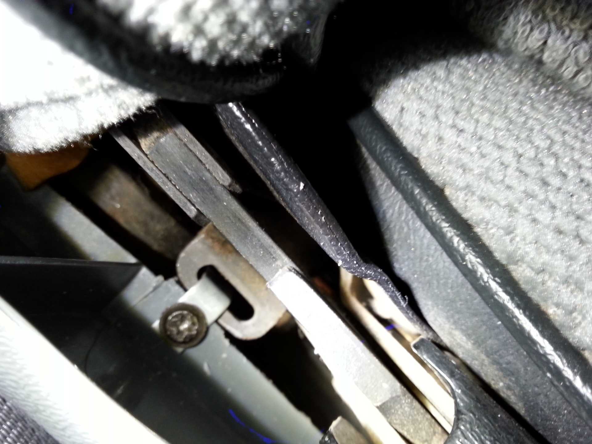 The plastic seat belt guides on the sides of the Fiero seats often break where the tabs are, due to putting pressure on them as a person exits the car. Once the tab breaks the guide has more outward movement, and eventually the plastic guide will break away at the mounting screw locations.