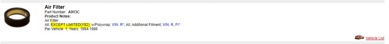 Hello, all. Strange and useless question perhaps, but can anyone tell me why the AC Delco parts catalog would list the A913C "polywrap" air filter (basically the severe duty verison of the A785CF) as usable in all 2.5L Fiero applications "EXEPT LIMITED Y82"? Other than the silver color and graphics, I had assumed there's nothing different about the air cleaner in an Indy versus standard? Any ideas?