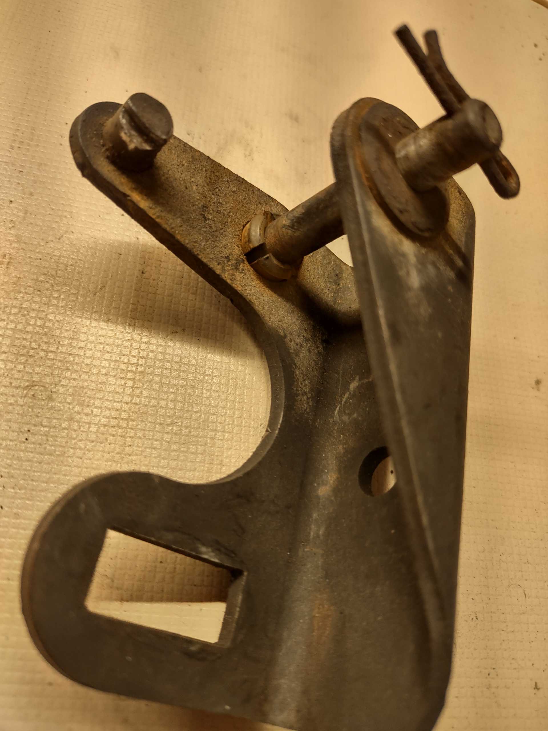 here is a photo of the transmission with the bracket circled and then another photo of my actual bracket so you can see the worn shaft lever.