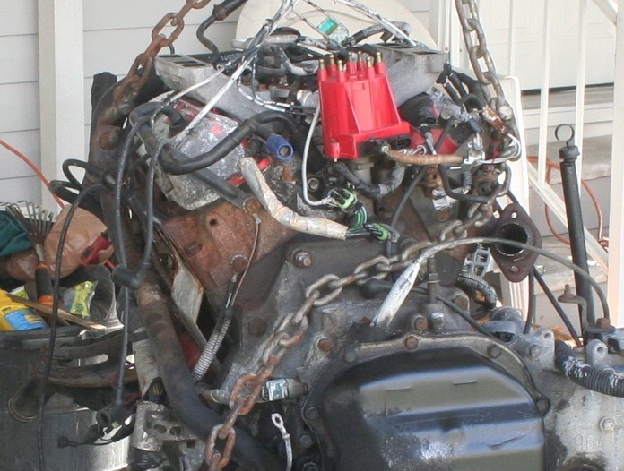 We figured it would be easier to just lift the motor a bit, and drop the tranny and replace it. WRONG! It was a royal pain, and would have wound up being easier to just drop everything again. Oh well, Live and learn!