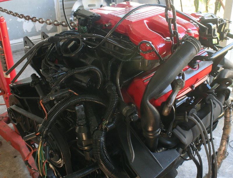 I started to look at engine swaps, and determined it was just more than I wanted to tackle at the time, and found a nice 2.8 replacement about 350 miles from me. The owner's engine in his Fiero went bad, so he bought a crate engine, assembled it and installed it in his car. He drove it from Colorado to Florida, and after getting here, decided that even being a brand new engine, thinking it would be much "peppier" he decided it was still not good enough, and decided to do a V8 swap. Thus the 2.8 was for sale. I rented a U-Haul, and went to Jacksonville Florida to get it. It was covered with a tarp in the corner of a large garage. I paid the $300 and brought it home. The best guess is the engine, according to him, has around 2,000 miles on it. Judging by the block when I got home, and later the rockers and such, that seems about right from what I can tell. The block still has that brand new shine to it, and is not even surface rusted. The lifters when I replaced the valve cover gaskets looked like they were not a day old, and the oil was nice and clean. It was not leaking oil, but I figured the engine is sitting here, may as well replace all gaskets while everything is super easy to get to. From there I put all new parts on the engine as well. New A/C compressor, water pump (metal impeller) new alternator, belts, hoses, plugs wires cap, rotor ect ect.