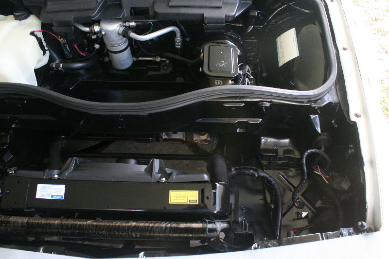 The seats are shot, and someone did a half arsed job at trying to install a sub in the console. A nice mess under the front trunk, hood, deck, whatever anyone wants to call it