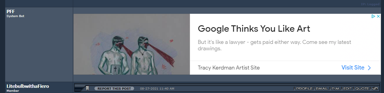 Man, I'm just saying... I do like "art" but definitely not a picture of two naked boys with lasers coming out of their eyes as they hold a bible.