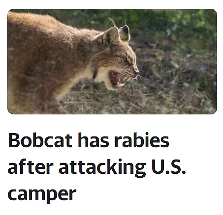 | quote | Bobcat that attacked a camper in Connecticut tests positive for rabies