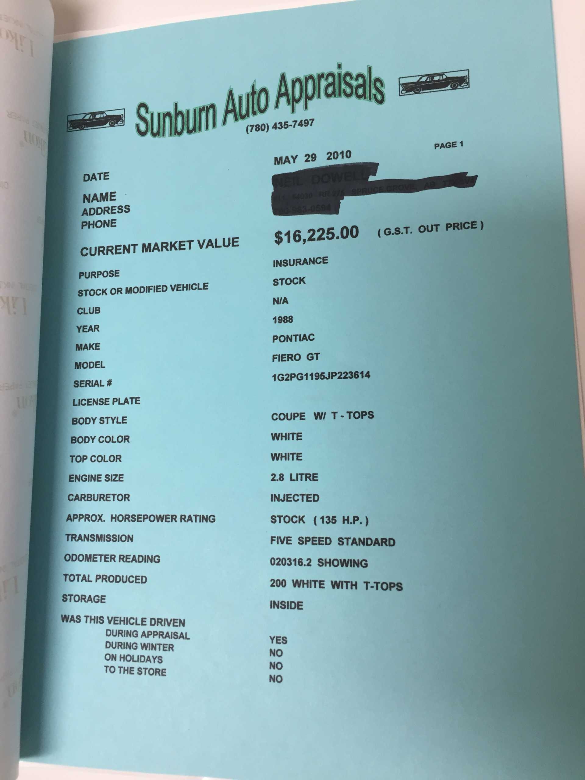 Well not to disparage any Fiero or yours but appraisals are just that appraisals. All are not equal and all are not representative of true realized market values as they ever fluctuate with demand.
