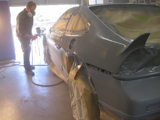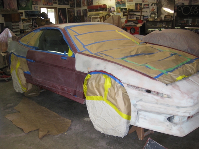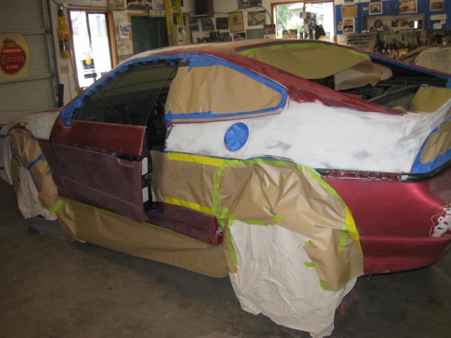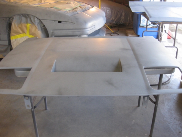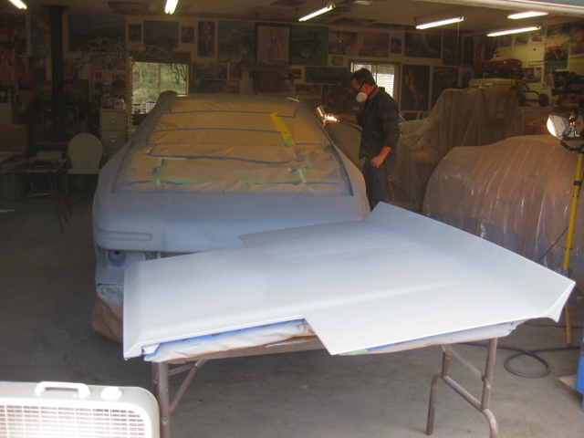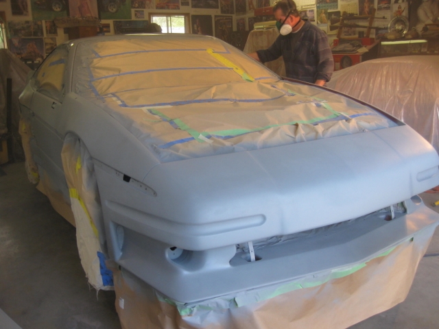 Those grills are attached via a very sophisticated method. Actually they are glued on with some strategically located GOOP RV adhesive. I have used it for many things including holding the tubular grill work in my V8 Fiero for nearly 10 years. It looks a lot like silicone, but is much more adhesive in nature. We should have it in primer and ready for final block sanding by the end of coming week. Then have to clean the bondo dust out of the shop so we don't blow it into the new paint job.
