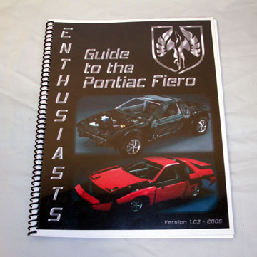 We are back in stock on the "Enthusiasts Guide To The Pontiac Fiero". This is a 54 page 8 1/2" x 11" spiral bound book filled with Fiero statistics, numbers built, colors, VIN's, Specifications, engines, transmissions, body styles, wheels, RPO codes, etc. Also a option code listing for each year by model. Detailed highlights for each year/model. Includes over 14 pages of full color graphics, including 100 color images of options. Still only $15.00 plus $2.75 mailing (US). Plus with each guide, you receive a current copy of NIFE's 20 page Fiero Focus magazine. You can paypal the $17.75 to: sales@fierofocus.com, or PM me for mailing address for check or MO. Guaranteed you will not be disappointed with this guide!