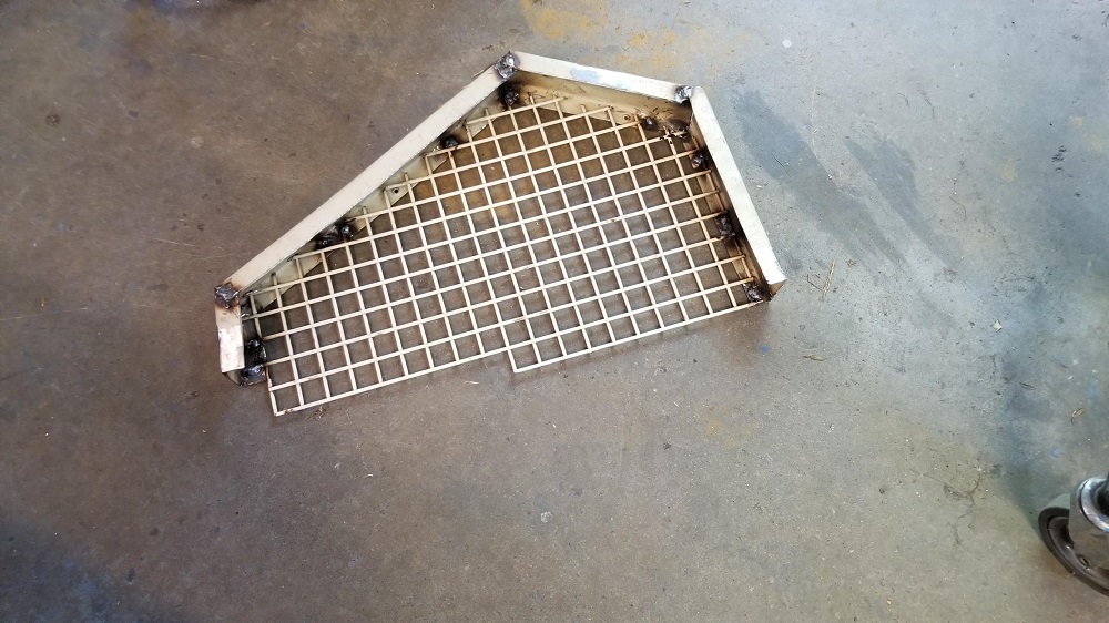 Also had to fab a guard, since the replacement pump is belt driven instead of direct drive like the one it replaced. I don't remember where I got this 1" square steel mesh. I have three or four sheets of it, 2' x 5', and the stuff was perfect for this.