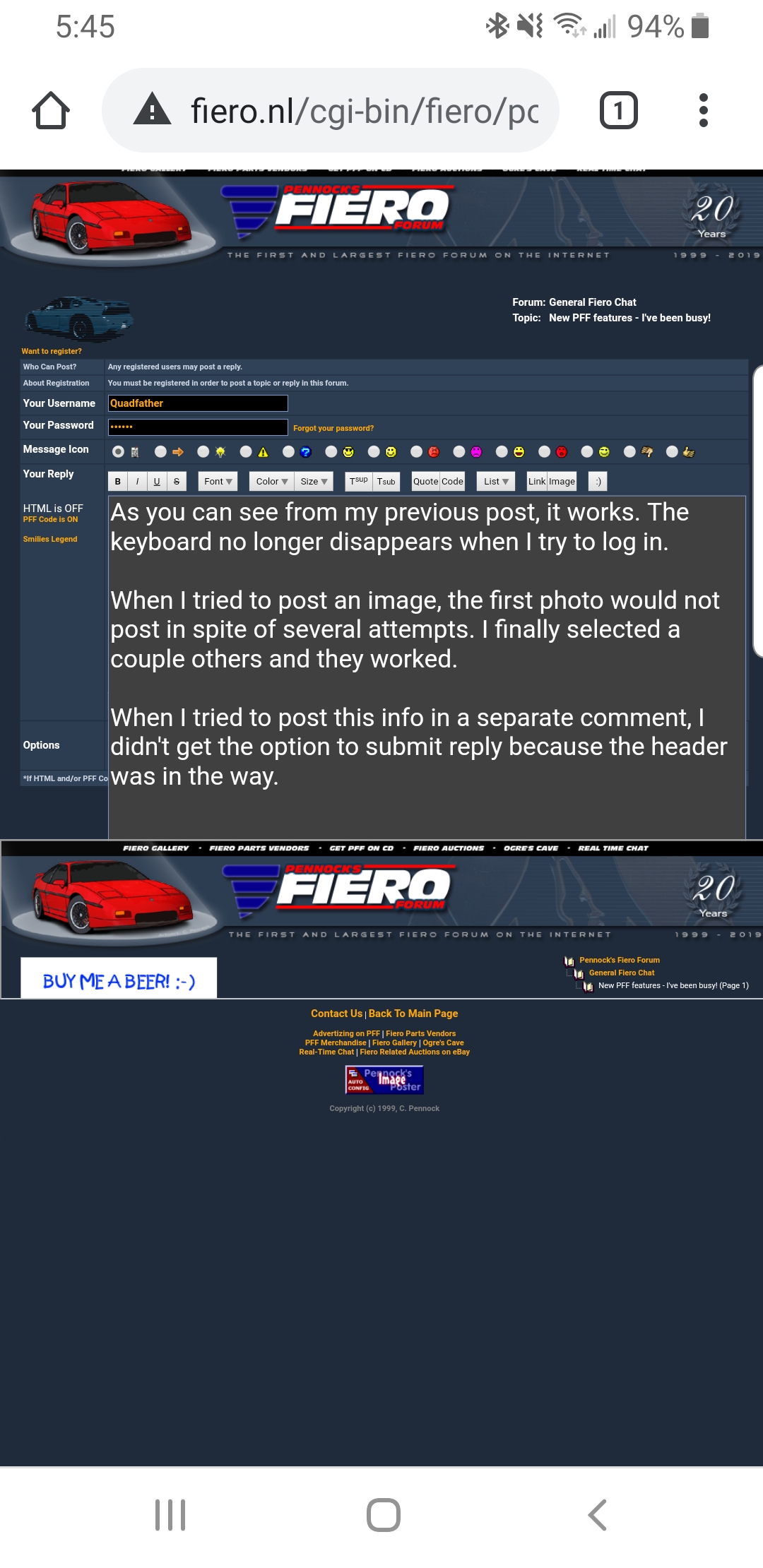 First of all, you are seeing the desktop version of PFF, not the mobile version... So the header you are seeing is in fact the page you are replying to.