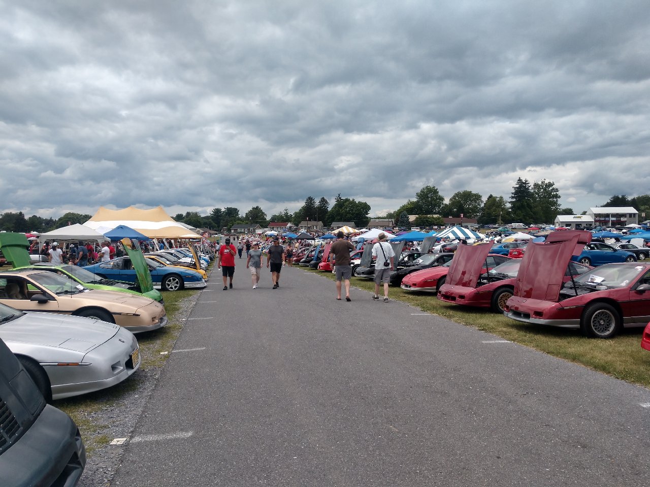 Saturday June 26th late afternoon. Three rows of Pontiac Fieros nearly 1/4 mile long.