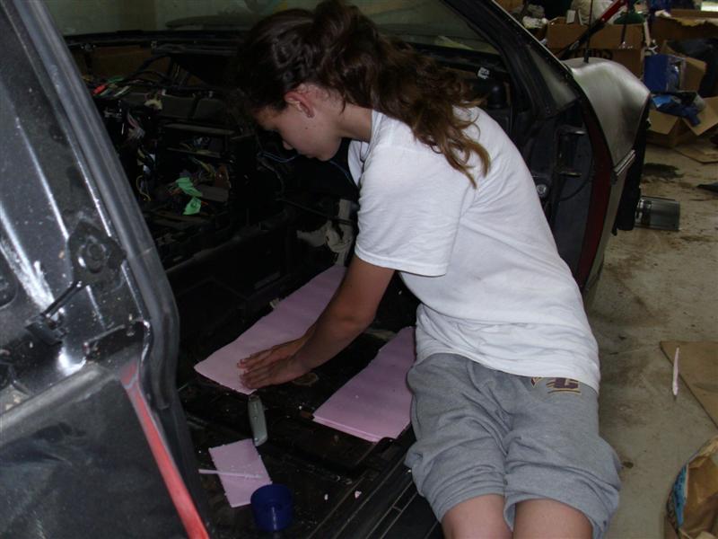 Yeah DataCop, we stole your idea. That things works great though! Never had a nice blast cabinet to play with before, so it is nice. We managed to clean up the air cleaner canister, the prop rod for the hood, and the back deck vents last night. Powder coater is on the way so that will be another cool tool to play with. Kathryn also managed to get new grommets and plugs in the floors before putting down the first layer of foam to even out the floor prior to carpet. We didn't get as far last night as I would have liked, but at least we did make some progress.