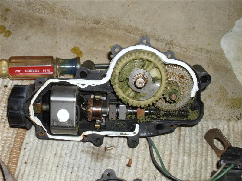 If you've never had a headlight motor apart, a word of advice. Note the white spot on the motor windings. Mark the side of the motor case that white spot goes into and leave the white silicone spot there for reference. If you should pull the motor completely out of both case halves and put it back, turned the other way, the motor will run backwards. I made the mistake on one and when I turned them on, one came up and the other went down. Turned them off and they reversed positions. No fun to have to go back and do them over again.