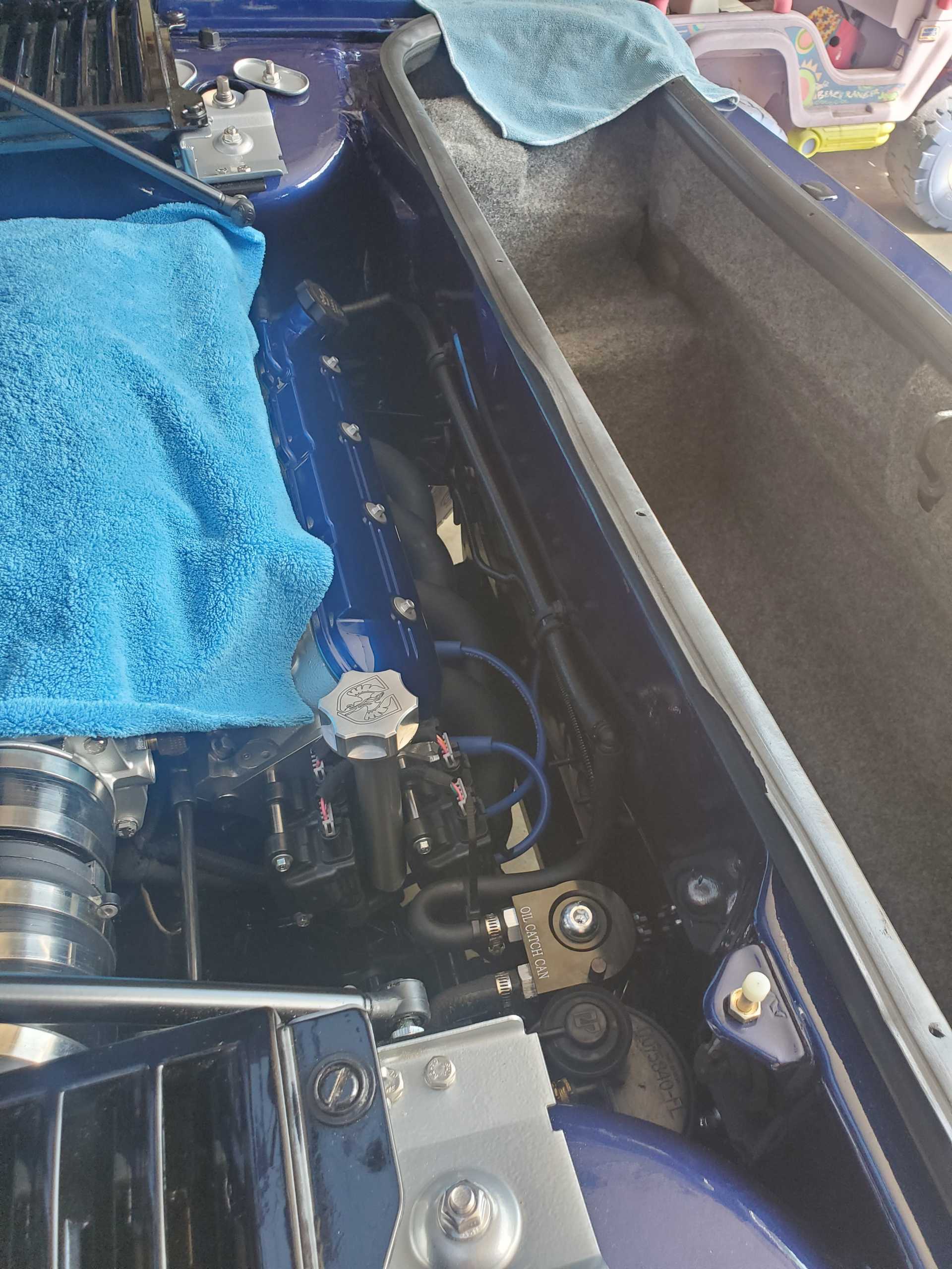 Huge sighs of relief all around. While there were still things to do before Carlisle (including reassemble the SD4 and reinstall it into the Indy), at least I had a running car. Matt spent some time buttoning things up while I did a thorough cleaning. One of the things that came about doing this time was the installation of the oil catch can. Matt carefully routed it and placed it in where it was nearly invisible keeping with the aesthetic goals of the build.