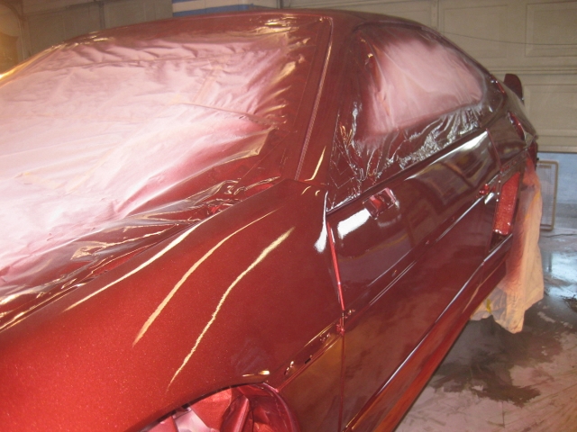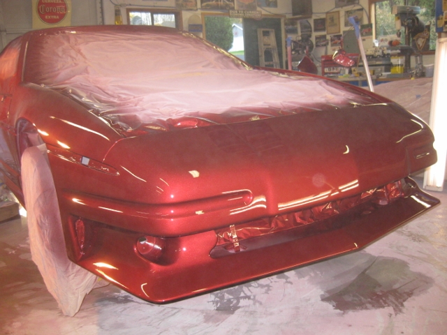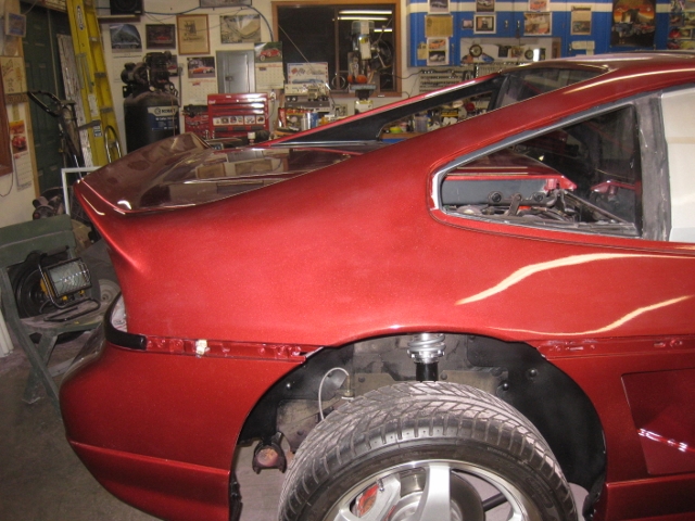 Rick, maybe we can meet halfway! It is shinny and bright, and I hope to get the personal plate "Rokit", (referring to the Cadillac tail lights), which has not been used here in Oregon. Could be a little risky, "Red car" with a Rokit plate has to be doing something wrong. Right? That 140 HP V6 could get me in a lot of trouble. Richard got the masking off and started some wet sanding today. Until we get it polished out, not exactly sure what we will end up with. A few things could be better, but the shop is just not conducive to perfect results. I'll update with more pictures once we get it outside and start putting it back together. Still needs alignment and a windshield since the original one is cracked.