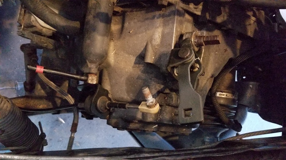 I guess GM used some different Getrag cases with Quad engines over the years. To fix this, I changed the size and shape of the extra metal I welded to the bracket. To get the right mounting position, I moved the linkage from the engine side while watching the shifter through the back window.
