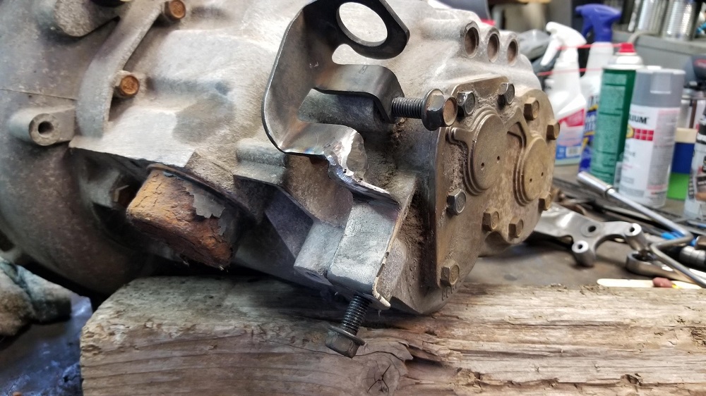 I know I've seen photos of how others have solved this, but I'll have to look around the internet to refresh my memory. IIRC, the process involves welding a flange onto the bracket that will allow it to use one of the bolts for the inspection cover on the end of the transmission.