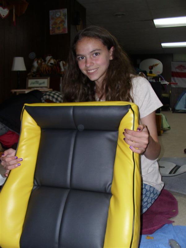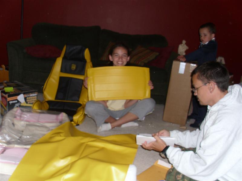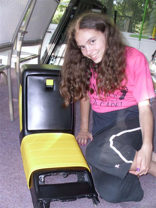 Then for the last two days we have been working on the seats, or I should say, Kathryn has been working on them with Dad's help. For those of you that have been considering a Mr. Mikes kit, let me just say you should have no hesitation. The product is top notch in quality, the instructions are easy to follow, and Kathryn was able to do a lot of the work on her own. The first seat Dad took the lead on, the second one Kathryn did most of the work on.