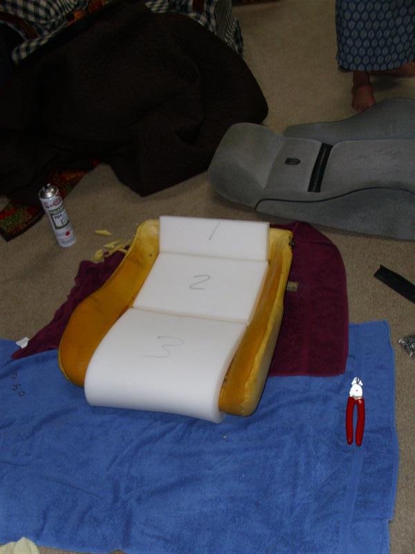 Then you have to cut into the existing seats so that you can expose the wires that need hog ringed.