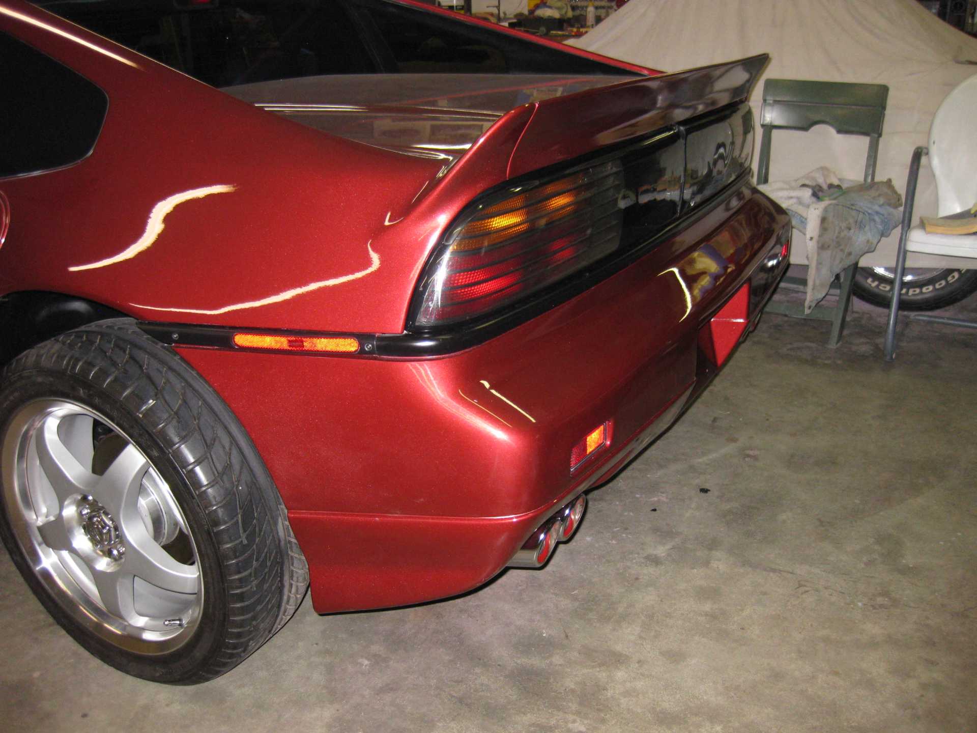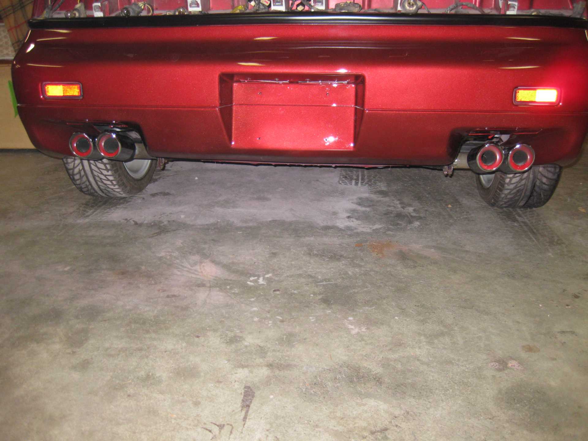 Thanks for the comments guys. Today I finally fitted the exhaust tips. Had to cut some 90 degree elbows out of a perfectly good four cylinder exhaust system that had been removed from my SC car. All the elbows I saw at several auto parts stores were way too long a sweep to get the tips to fit in the confines of the bumper opening. If I had cut them back, they would have been into the curvature of the pipe too much. I could have cut up a decent set of original GT tips to do it, but though someone else may need those some day. Anyway, still need to final weld since the elbows are just tacked, but they do fit. Looks that in the straight on picture, the right side is a bit lower than the left. Be assured it does fit correctly, but I had not tightened the clamp all the way and it dropped just a bit.