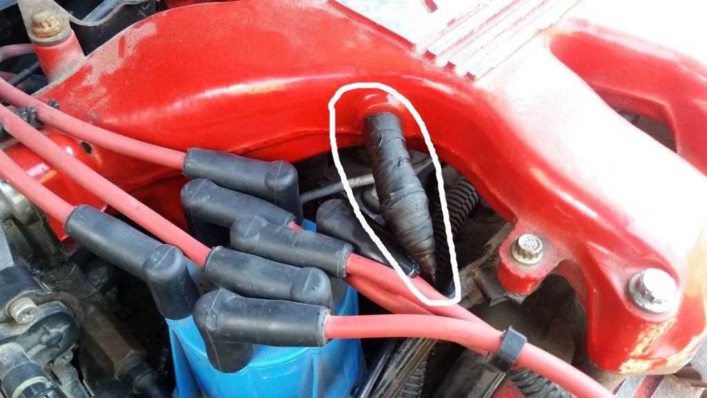 Wow...so many questions. Okay first, if your radiator fan does not come on even with the dashboard AC selector turned on, then your fan motor or the wiring to it has probably failed. Next, your idle RPM's are very close to typical, and I wonder if your tach is reading completely accurately. Mine reads an unwavering 1050 at idle and I seem to have no vacuum leaks (famous last words..). The new Cardone replacement distributors: The members here have reported they sometimes come with little to no electronic heat transfer grease/paste under their ignition module and consequently those ICM's do not always last for long . You can add more grease of course, but it's said that removing the ignition module will void the warranty (not a problem if you don't wish a replacement). Others here talked of the pick-up coil wires having polarity, so I just passed that on..sorry if that isn't true. If you wish, you can temporarily run a hose from your vulktaped manifold tap directly to your black plastic vapor (EVAC) recovery tank (between the driver's side strut mount and air filter). It's the smallest tube. Also, if you are spraying for leaks, there are four nylon vacuum tubes that are a bit hidden. Two are directly under the throttle body and one is behind them at the back (the cold start injector air line), and one near the EGR tube's plenum connection.