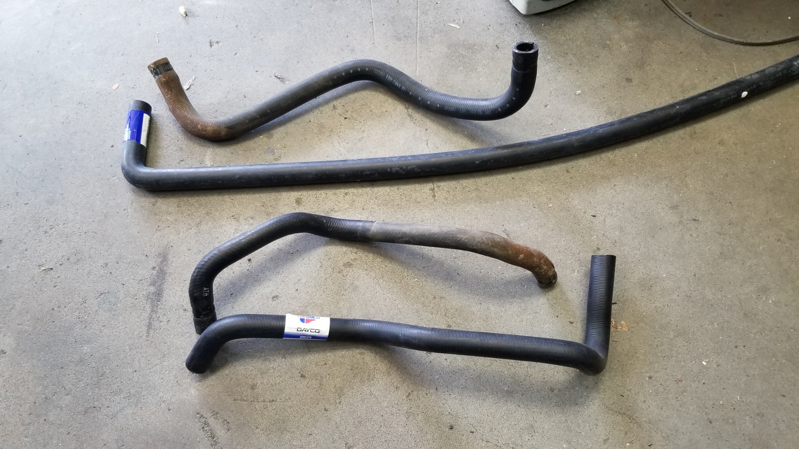NAPA had a whole ROOM full of heater hoses, but the closest one I could find to the larger hose was one with just a single 90-degree bend. It won’t work, because the turn to the tube under the car is just too sharp.