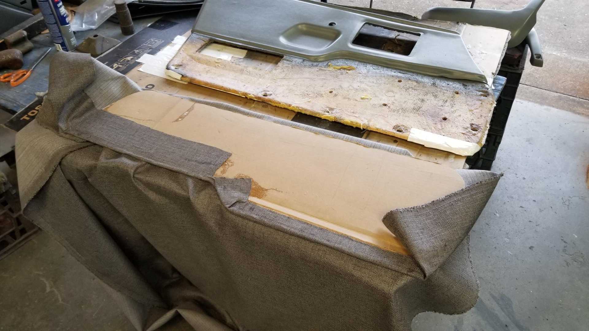 Finished using the Camaro seat material for the door panels, put the panels in the car and decided I didn’t like them, so off they came.