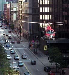 I still cant find mine in Inspector Gadget, but when I was in Pittsburgh I was an extra. This is the only picture I found. I circled my car. At the time it was my 4 cyld power blue 87 coupe. Before i did the V6 swap to it.