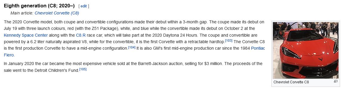 That article written by a Wikipedia contributor is undoubtedly an imbecile. A Corvette is a very nice car but IMO, not worth $80K . They also lose their value. If you look at used 80's Corvettes with their 170 HP V8's, many of them now sell for less than the price of a Fiero. My Fieros make me happy.