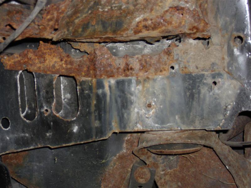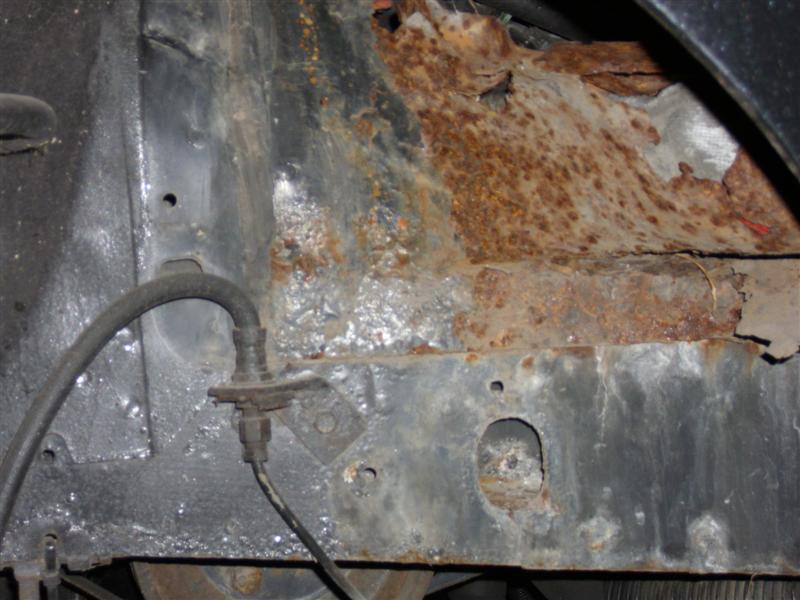 We managed to get most of the front panels of the car at our last trip to Uncle Bob's. Most of the stuff under the front panels looked pretty good, thankfully, because what was under the rear wheel wells didn't look good at all. Here is the photos from under the back quarter panels.