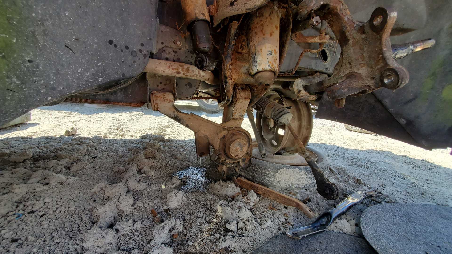 Sunday was the first time in a long time that I spent any time UNDER the car, specifically the front end. Years ago I noticed the lower A frame on the passenger side was bent, but didn't closely inspect it until now.