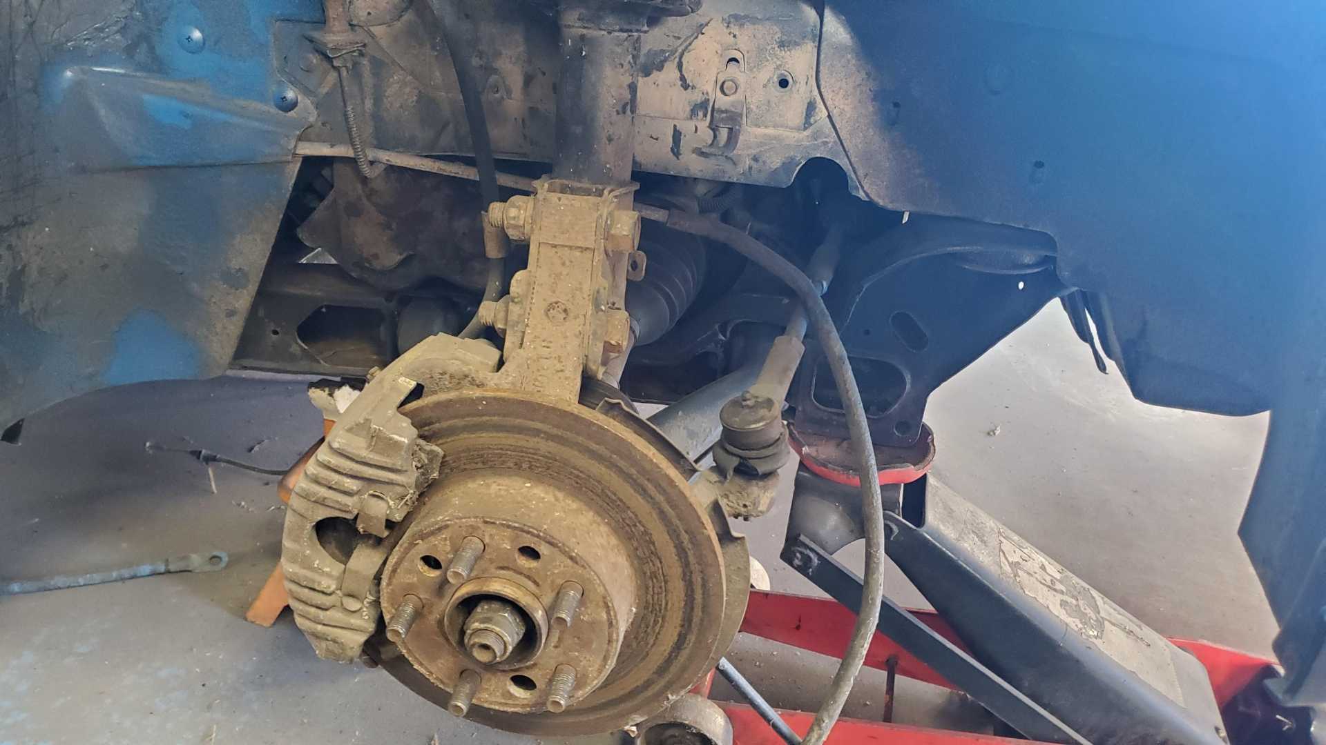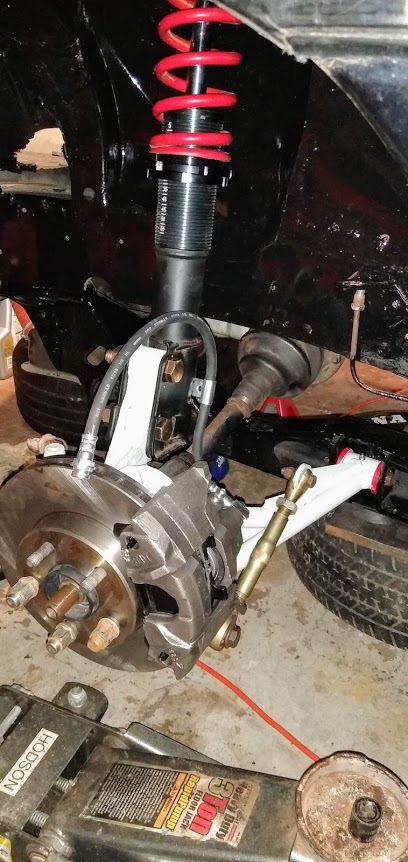 Decided to go with 1989 Grand Am calipers on the rear. New rotors, pads, brake lines, Joints, etc. Took a bit to locate the parts I needed for the Held bump steer setup but I managed. New Boots on the axels. I got into the passenger side too. Built coilovers, took out the rust and repainted. So the rear is pretty much good to go. I'm going to flush new brake fluid through the lines before I connect the new calipers.