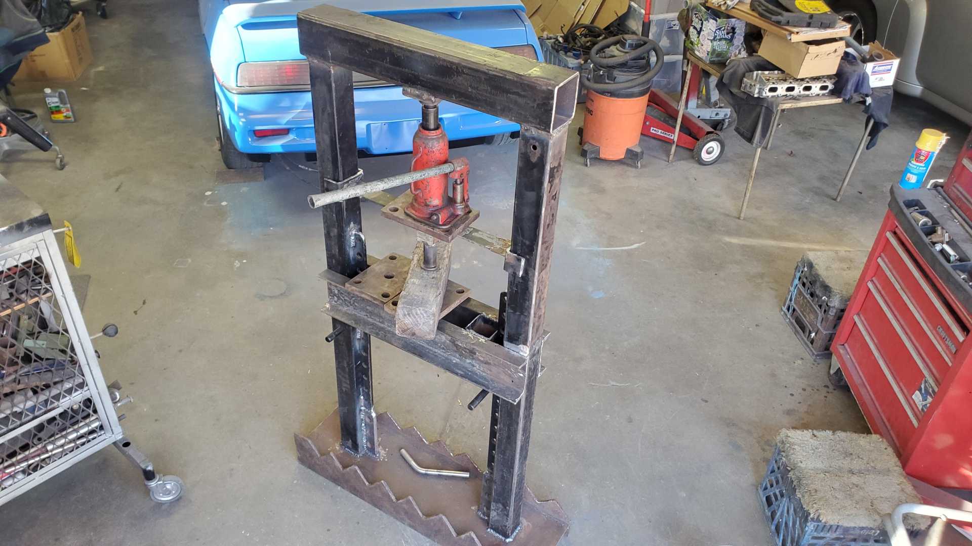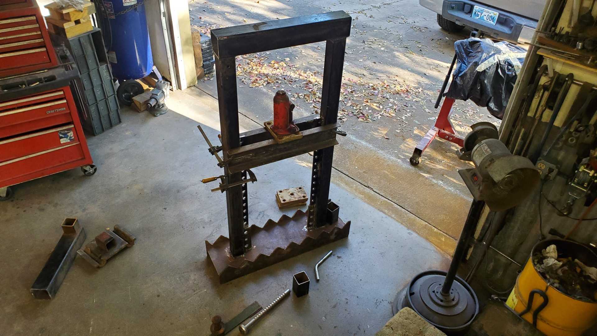 Pretty much finished the DIY hydraulic press. I’ve been hoping to find a deal on Craigslist for a 20-ton jack, but Tractor Supply has them for 50 bucks.