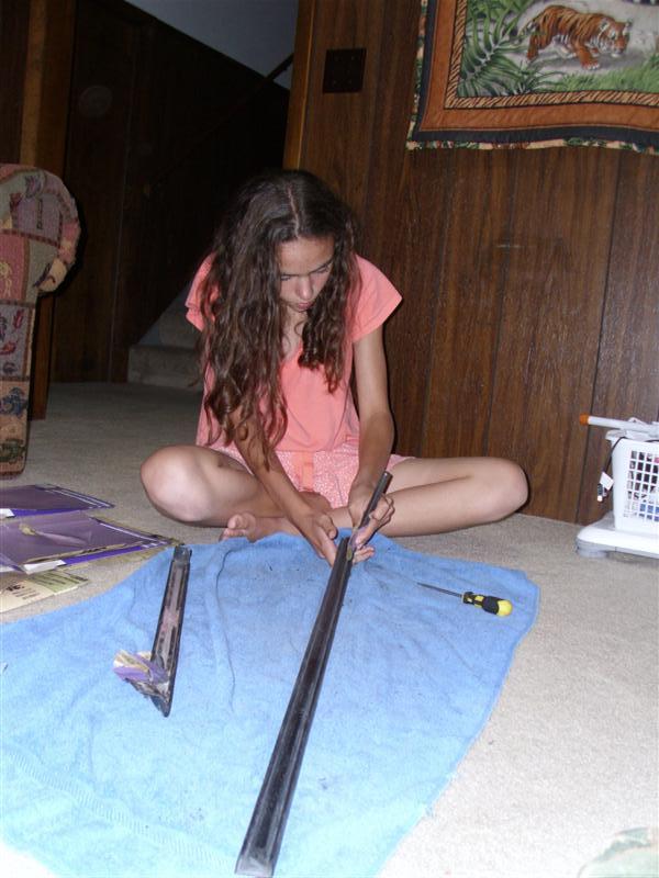 Some of the other pieces she has worked on at home have been the passenger side rubstrips....cleaning off all of the old rattle can paint down to the plastic and then prep for paint.
