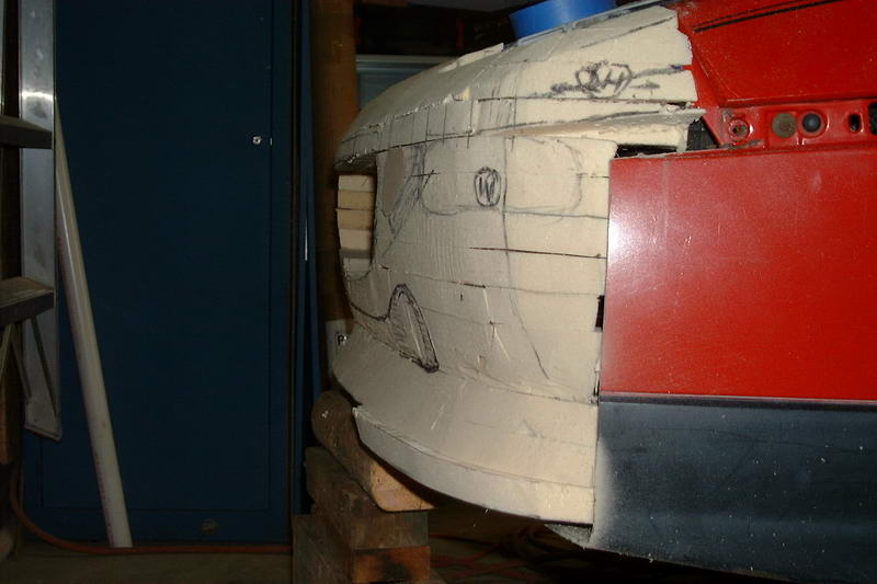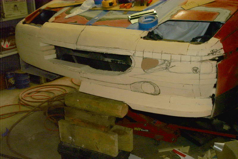 Looks a lot more like something now, but the pics are still on the camera. Tomorrow morning, I'm headed to the local salvage yard to see if I can pick up the turn signals and driving lights. Then I should be able to finalize the shape. -yeah!!