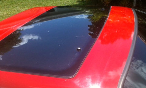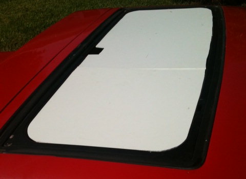 Due to the intence sun here in Florida, I made a sunshield out of some 1/4" plastic sheets I had laying around. Had to made it in two sections, as the stock was only so wide. I put some thin weather stripping down on the body of the sunroof to take care of any noise the plastic made w/out it.