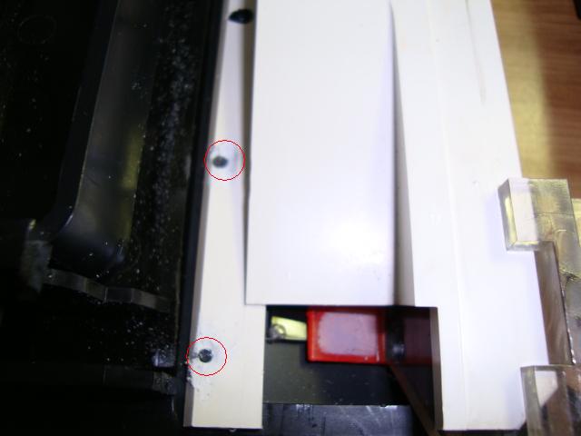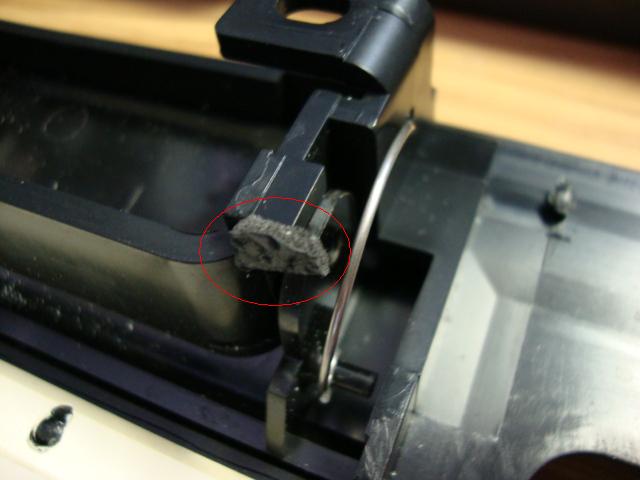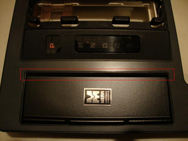 So now, when the ash tray doors are snapped open, they will hit on these stick-on pieces, and the top of the ash tray door will never touch the edge of the bezel. Here (looking from the bottom), you can see the ash tray door open, and its resting on the stick-on piece.