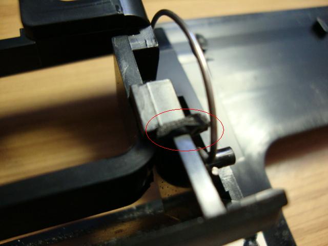 However, the orange shift indicator paint appeared to be all worn out, so you could not tell what gear you're in. So I used my dremel and a cone-shaped grinder to knock off two of the melted pins. This was enough to lift up on the white plastic piece and allow the indicater piece to slide off (the clear plastic "thingy" on the right edge of the pic).