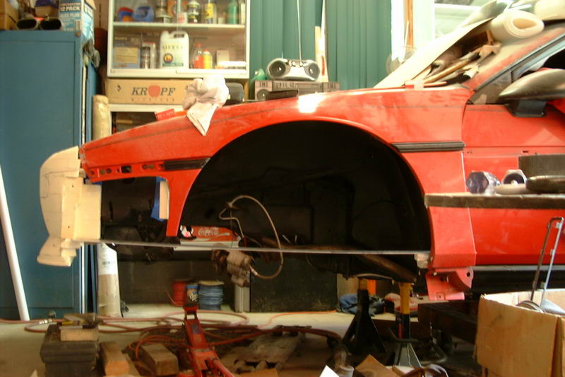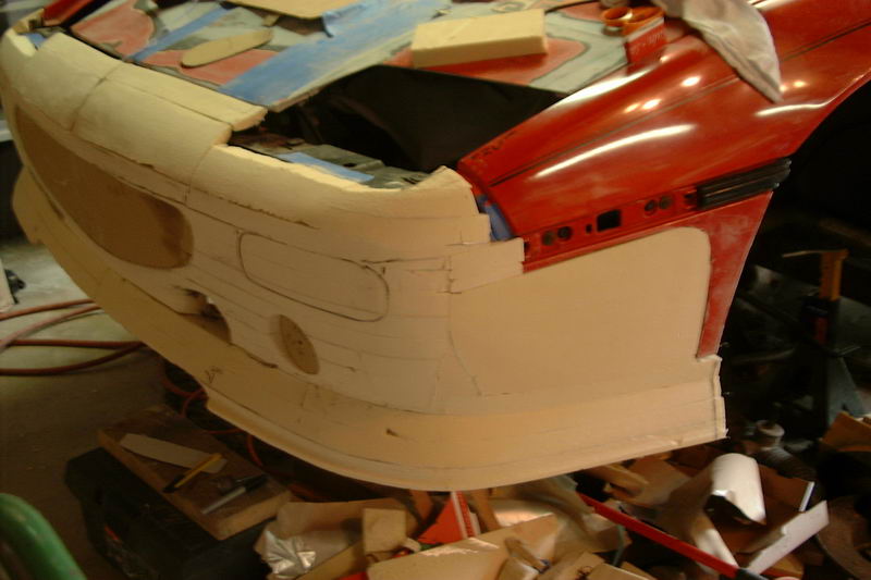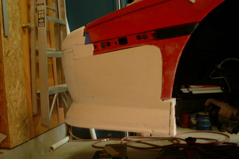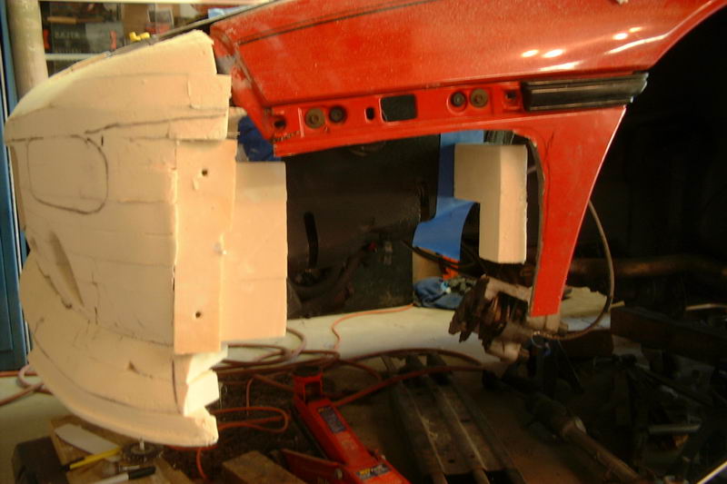 Then started building up. This time,I tied the side to the chassis (better than I did the front) to make things maore stable. I also cut up the remaining GT side to use as a guide for the wheel well and interface for the upper fender.