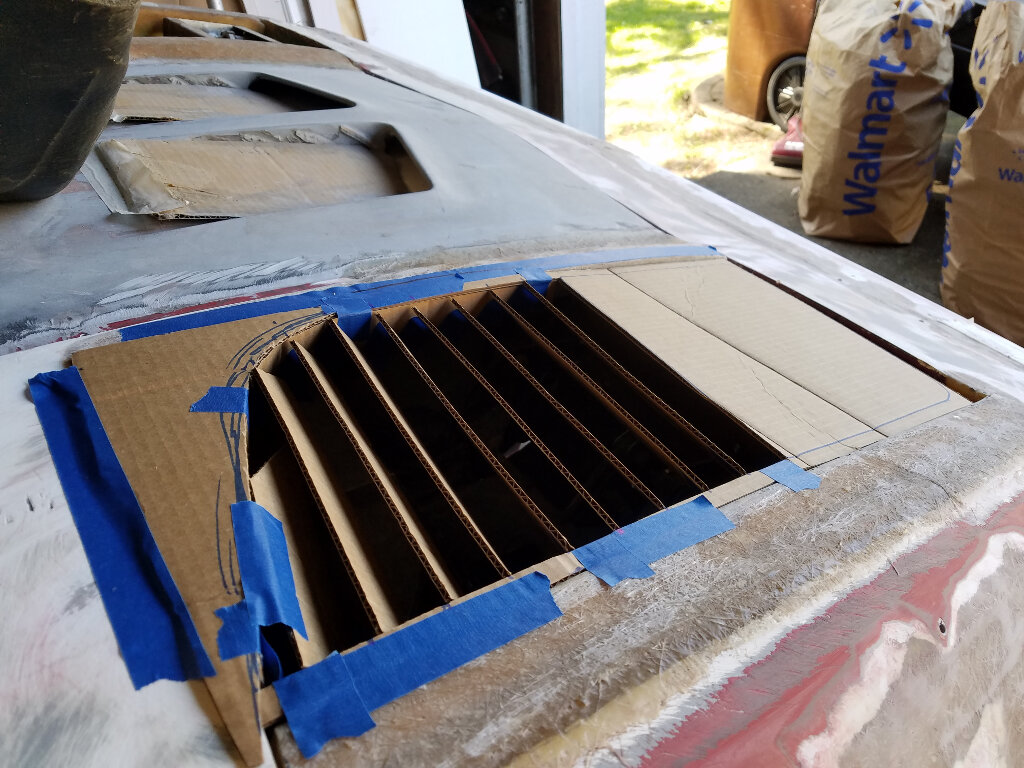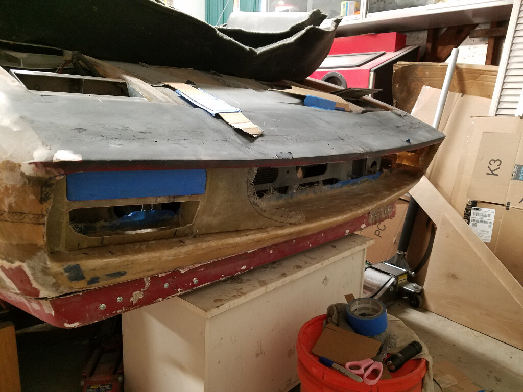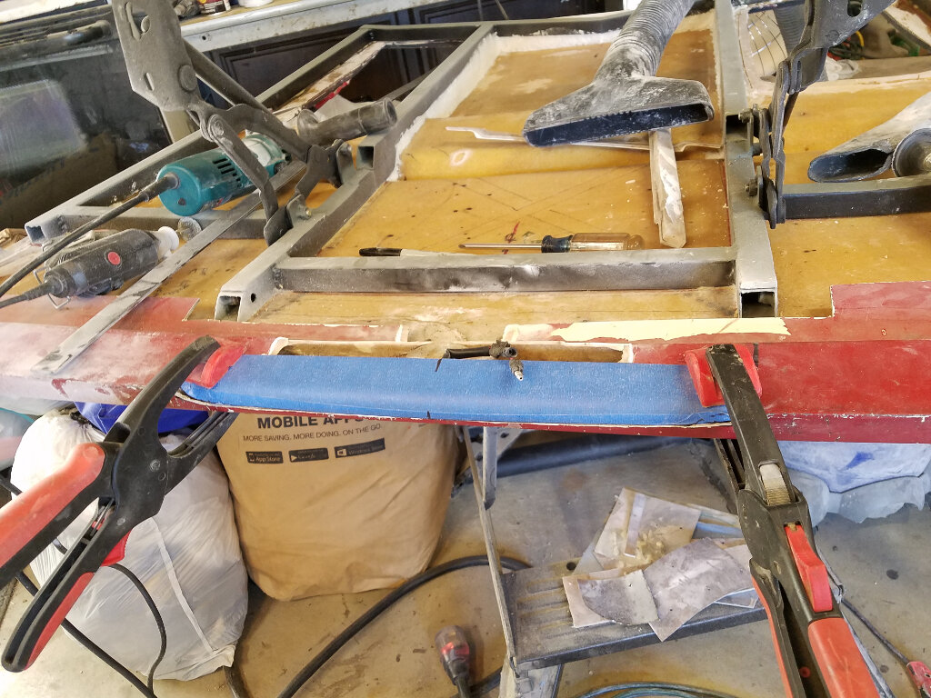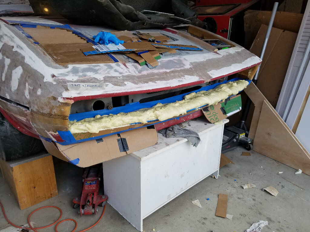 Then I started working on the front. I decided to break out the foam to create the shelf for the lower valence. Then a lot of sanding and measuring. Tomorrow I'll work on the profile and if the weather permits, break out the glass.