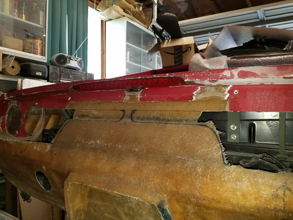 First off, I roughed in the third brake light. It's a Subaru piece, although I saw a Nissan piece that was identical.