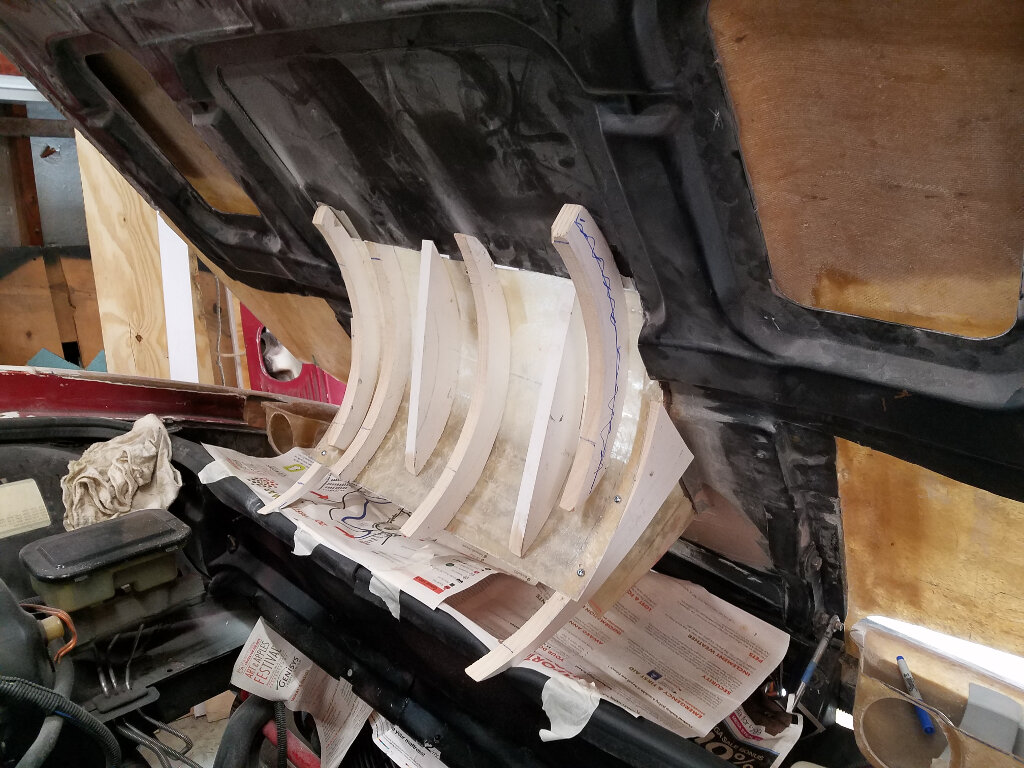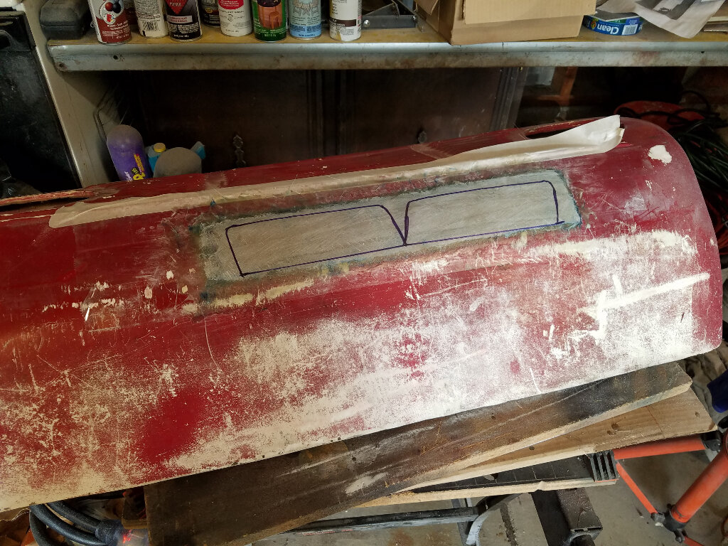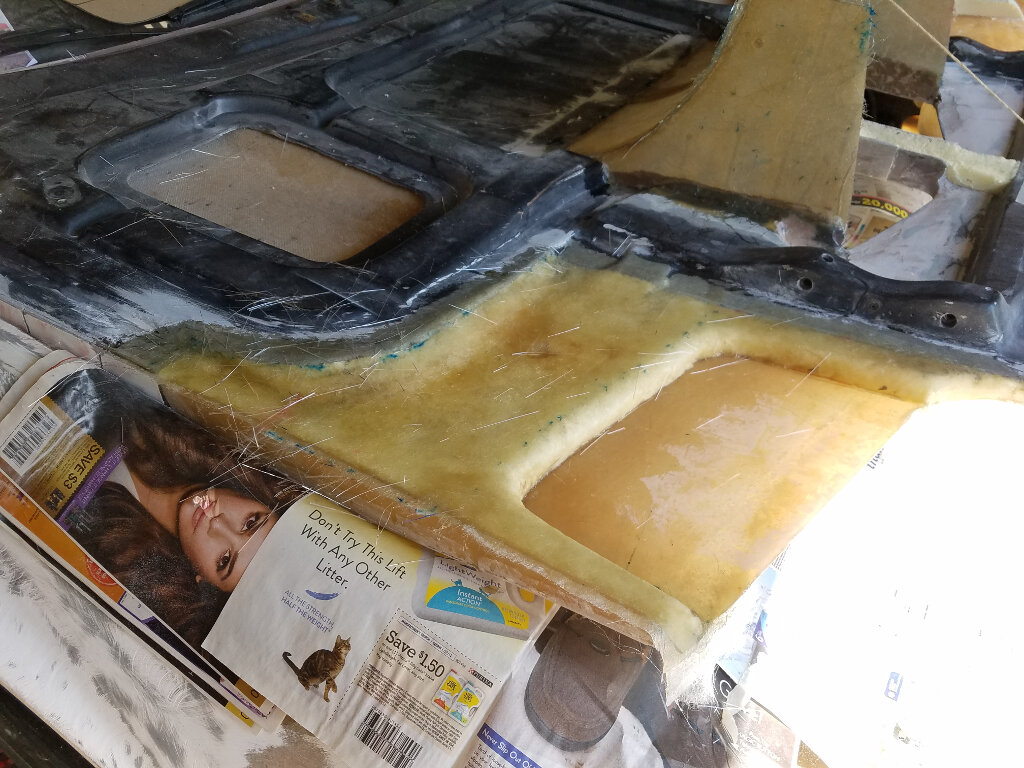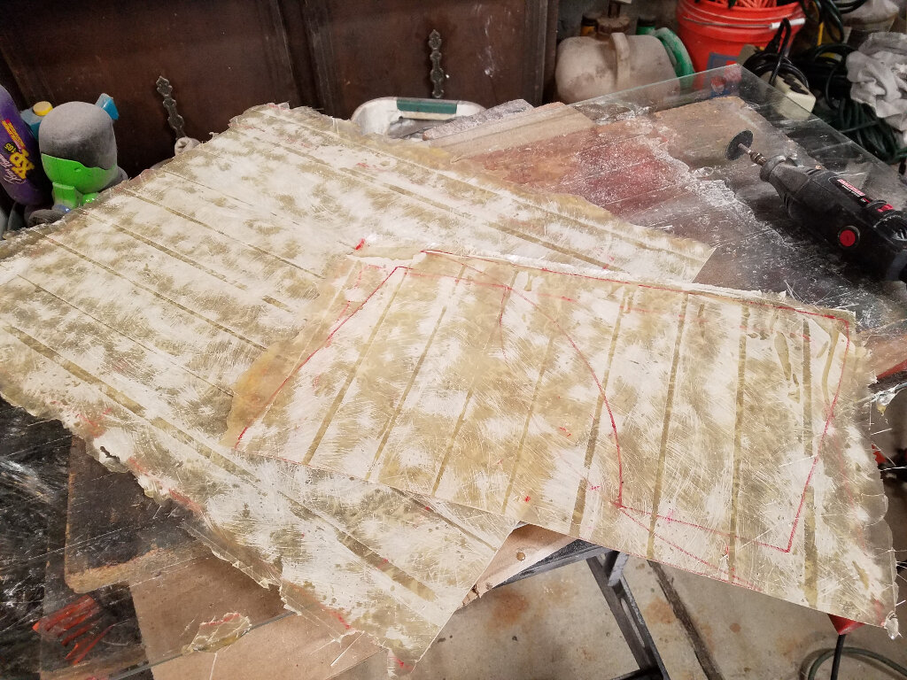 There isn't anything particularly good about the diaper, except that it's the right shape for what I needed. Louvers for the hood. Here it is with 4 layers of FG, and sanded down.