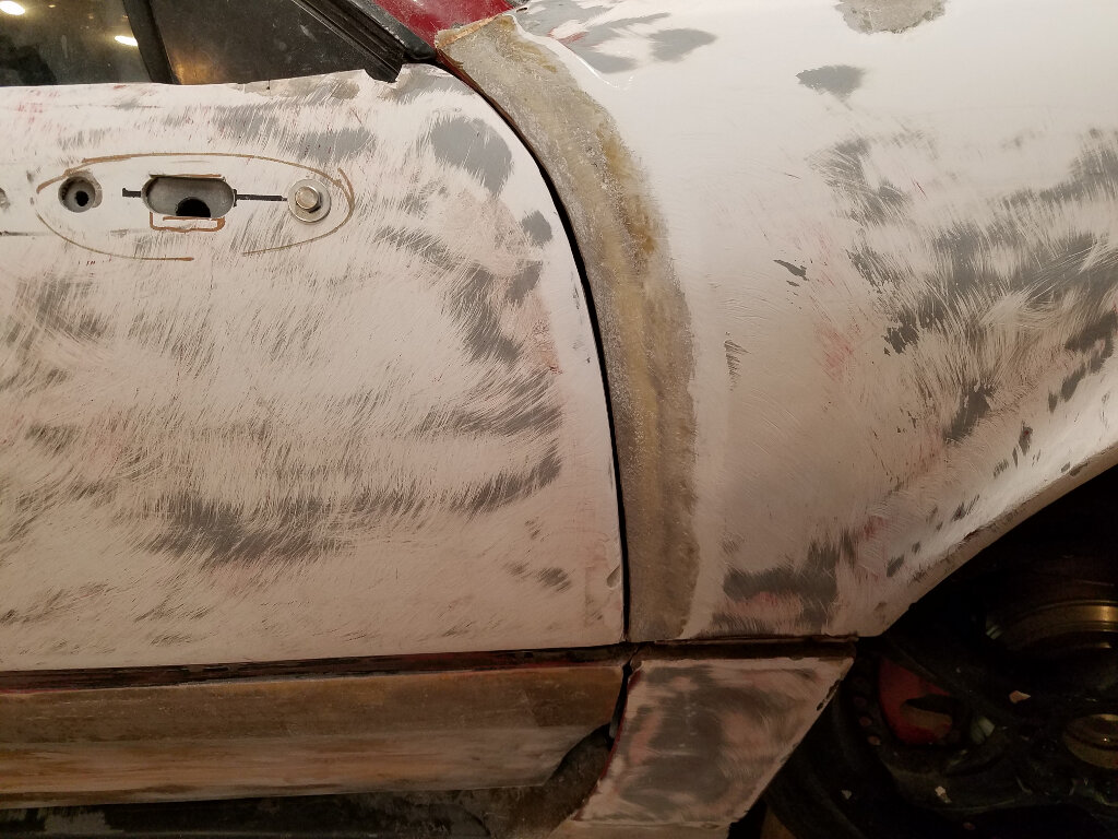 Your cars going to look so damn sweet when done, I wanna see it done too! The only way to get on top of ll the fiberglass is to do 2-3 sections at once. See what you need and where, cut the mat out, and make multiple trips running back to mix more resin before it starts to chunk. Its a mad dash I know ive had stuff dry in less than 5 mins here when its kinda warm. I do at least 2-3 sections on mine each time. Only takes maybe 30 mins to set the fb. Go sand later, im lucky when I can throw an hour at mine so baby steps r getting mine done. Its such a pita the fiberglass. Then the dust. then bondo. then more dust lol. Just imagine the day when youre laying paint down, yeah... thats my motivation