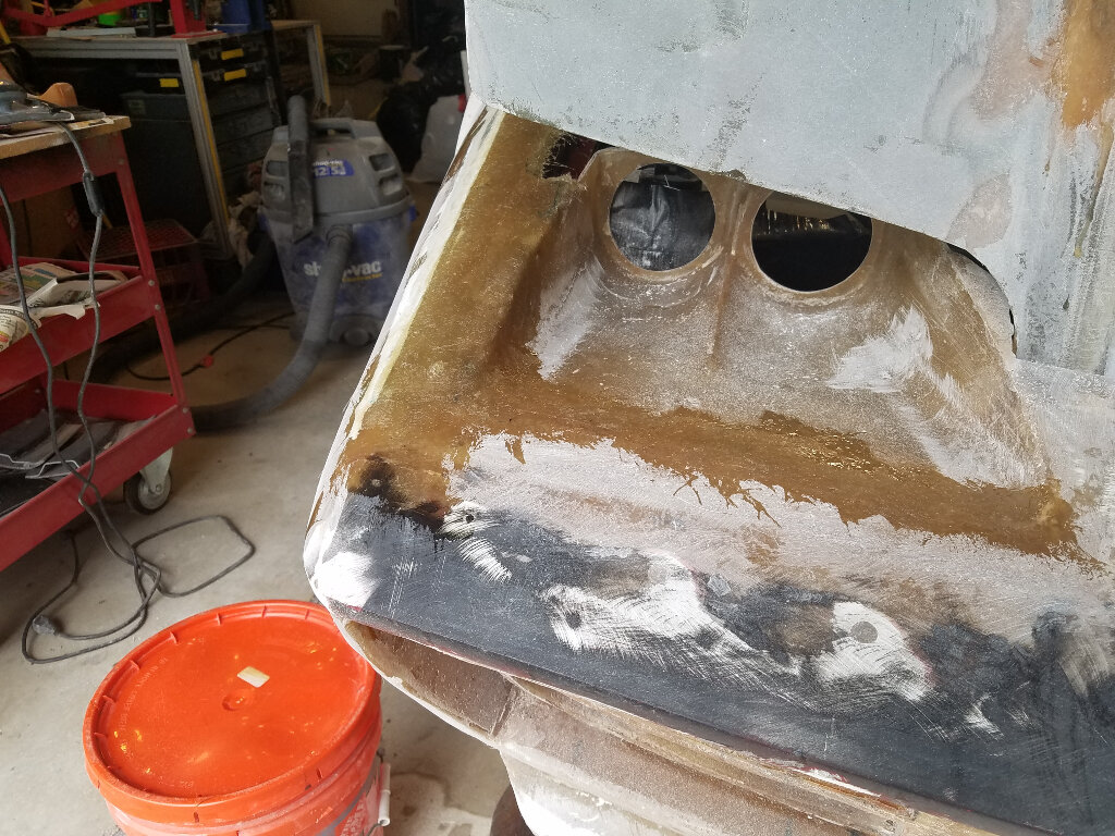 Then onto the other side.. Once that was done, I worked on the vent. I put down two more layers of FG on both the sides and back. Then I built up the step that was cut out.
