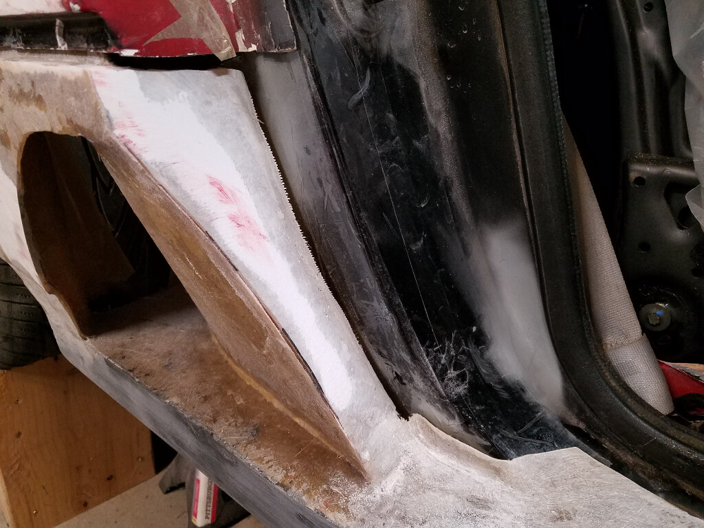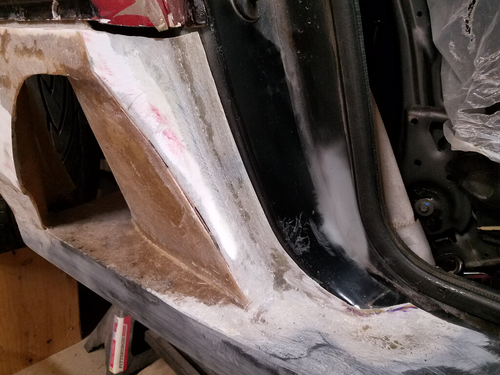 Then I moved on to the rocker. I filled in the wheel inner wheel well that will eventually support the wheel tub.